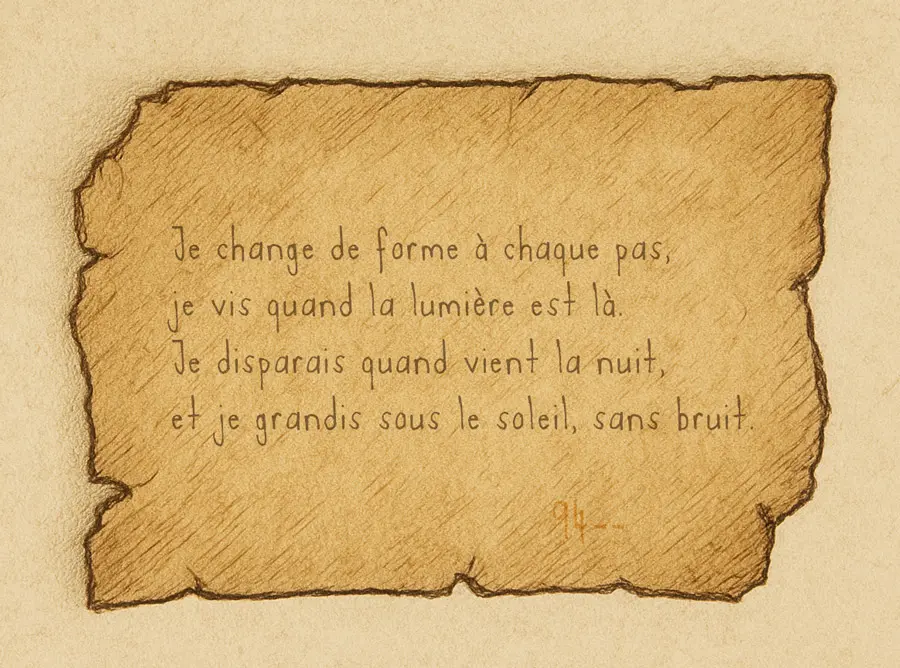 Vous avez résolu l'énigme ! Vous partez vers le sud en suivant le sentier qui mène à la Caverne Polaire. Arrivé au lampadaire, vous cherchez autour de vous, il n'y a rien hormis un bosquet de buissons et le lampadaire. Vous fouillez le bosquet et vous découvrez le pauvre Zéphir inconscient et ligoté.