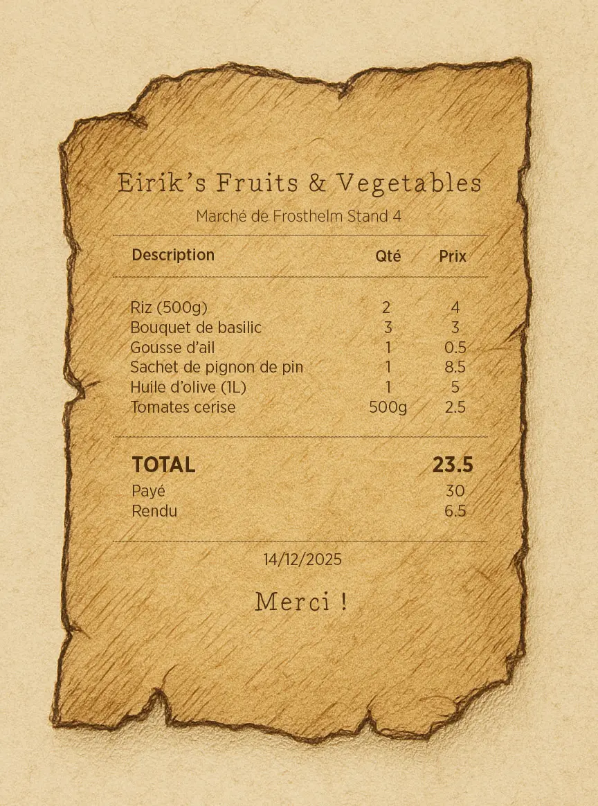 Cette bonne nuit de sommeil vous a requinqué ! Après un bon petit-déjeuner, vous serez d'attaque pour poursuivre vos investigations. En entrant dans le réfectoire, vous croisez Sven et Ronan qui partent pour aller au marché.